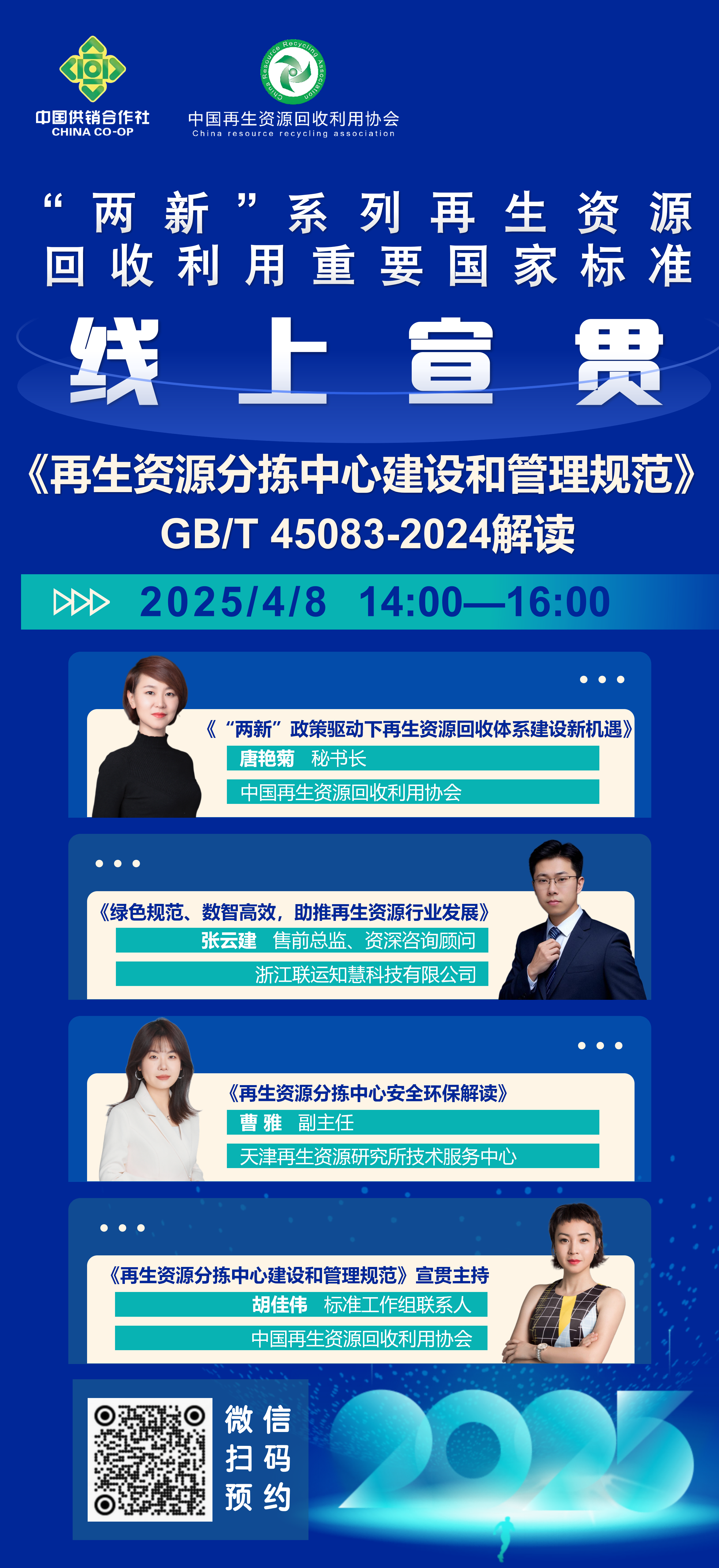 为充分展现国家标准的权威性和普遍适用性,增强其对再生资源回收利用行业的影响力和指导作用,促进国家标准在全国范围内的实施和应用,中国再生资源回收利用协会将于2025年4月特别筹划国家标准宣贯线上直播系列活动。