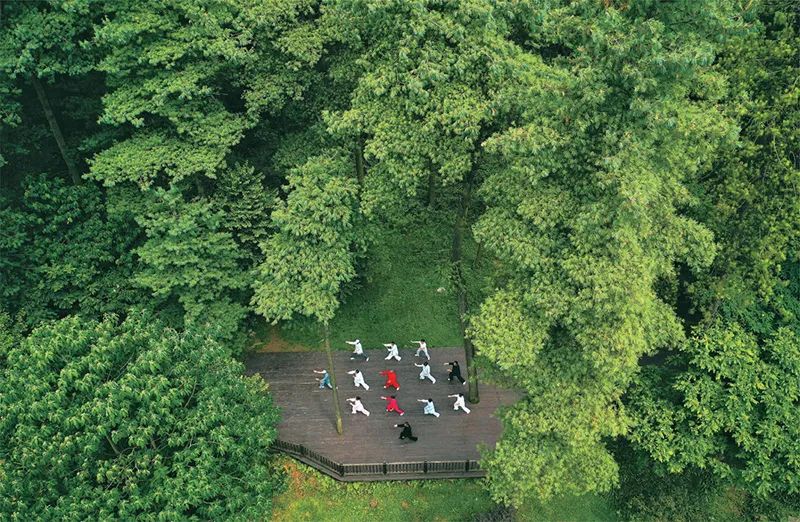 2022年以来,贵州省贵阳市以长坡岭国家级森林公园为试点,建设贵州首个“林长制”主题公园,开展习近平生态文明思想、林长制政策、森林资源保护发展政策等宣传,促进形成全社会爱林、护林、兴林的良好氛围。图为2022年7月13日,市民在长坡岭国家级森林公园里健身(无人机照片)。