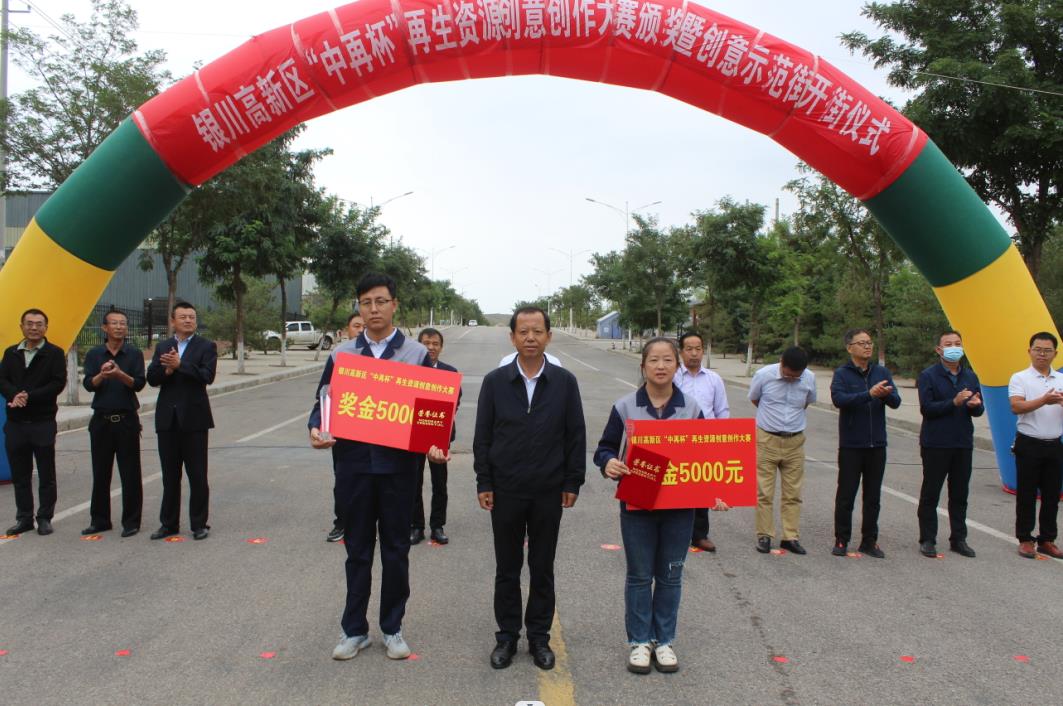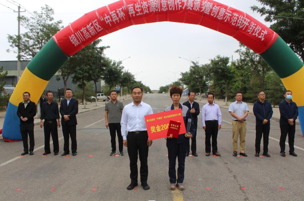 8月27日上午,银川高新区管委会举行首届“中再杯”再生资源创意创作大赛颁奖仪式,灵武市、高新区有关领导及宁夏公司副总经理张勇出席颁奖仪式。全体职工参加了此次活动。