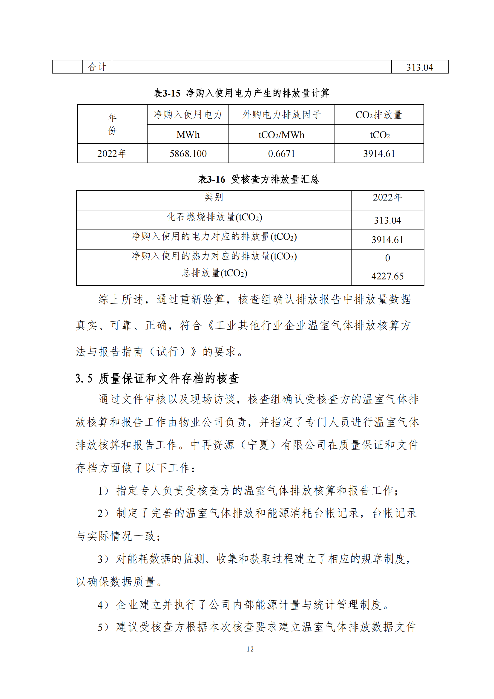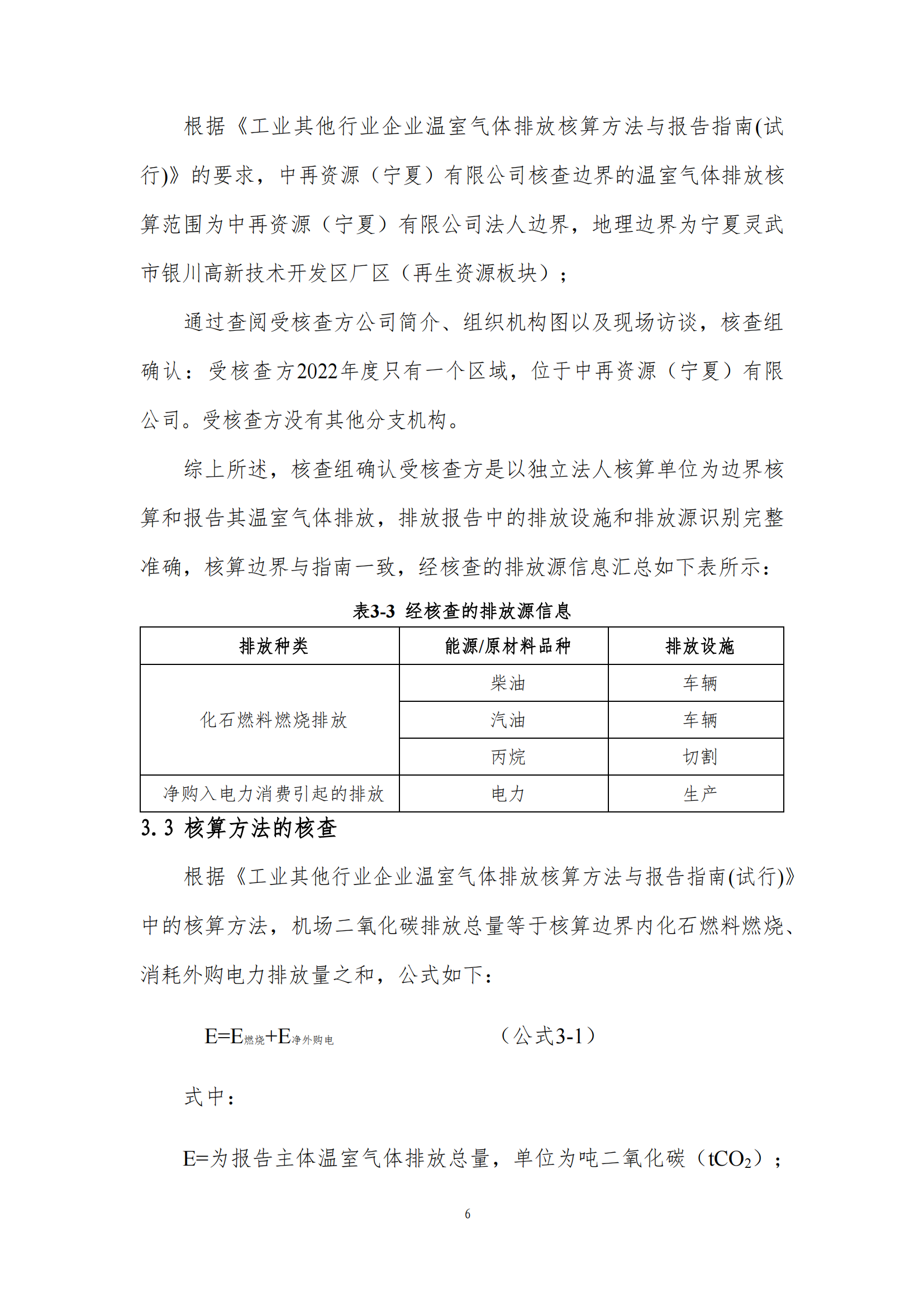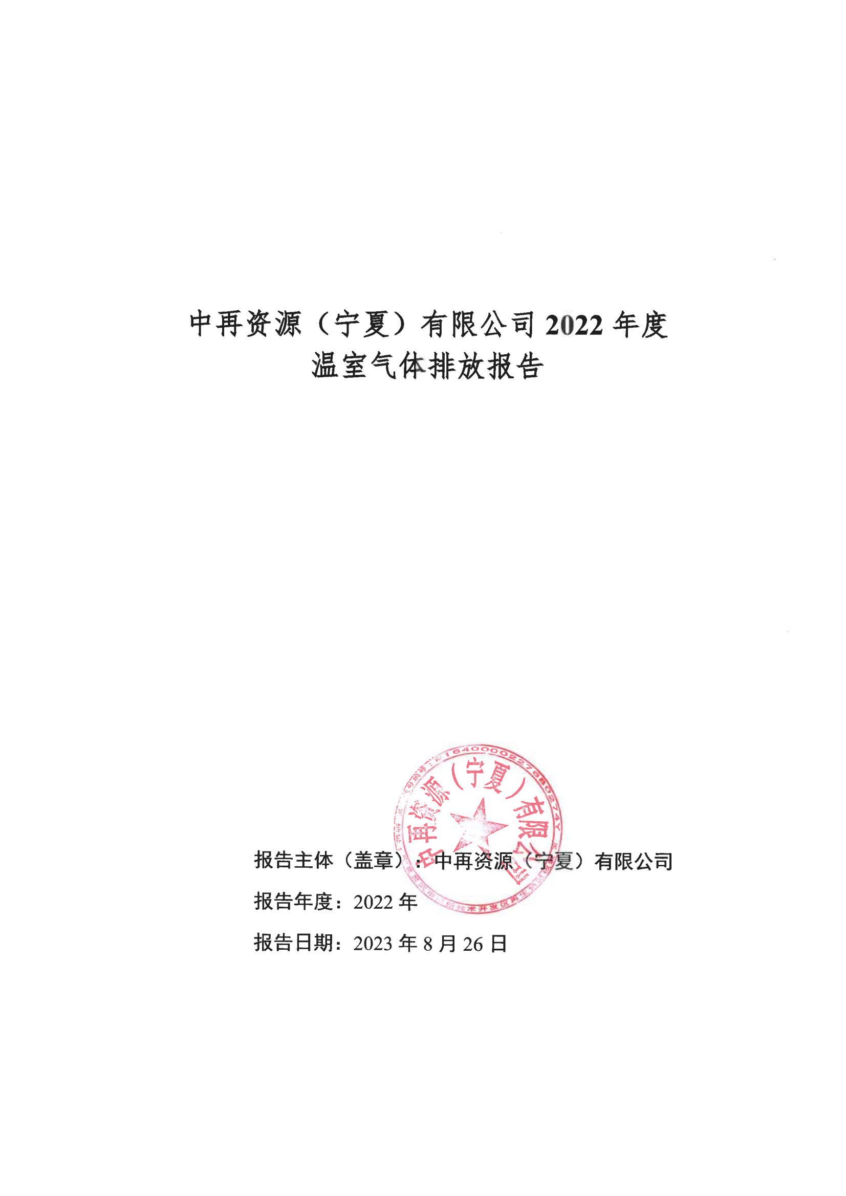 中再资源(宁夏)有限公司2022年度温室气体排放核查报告