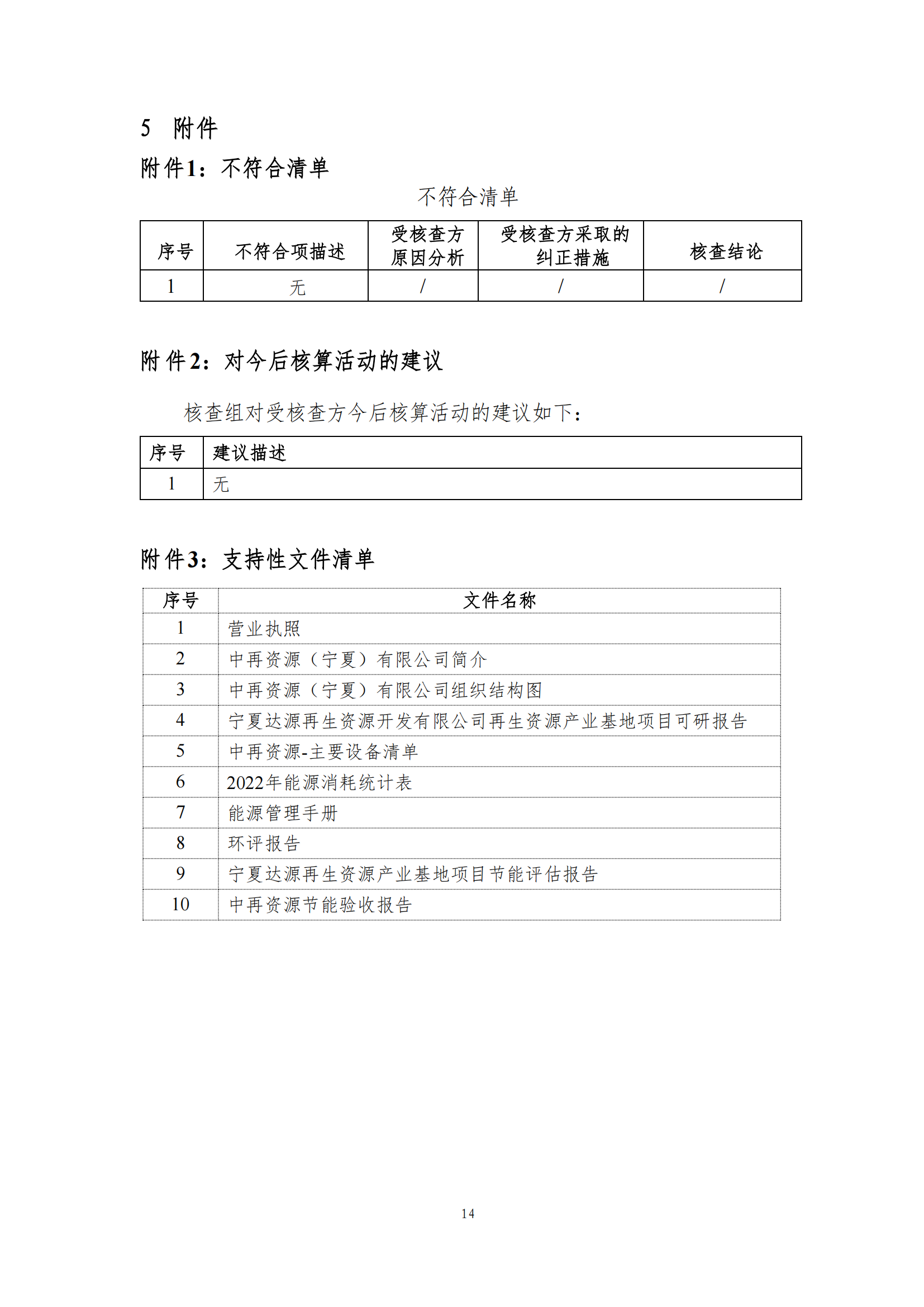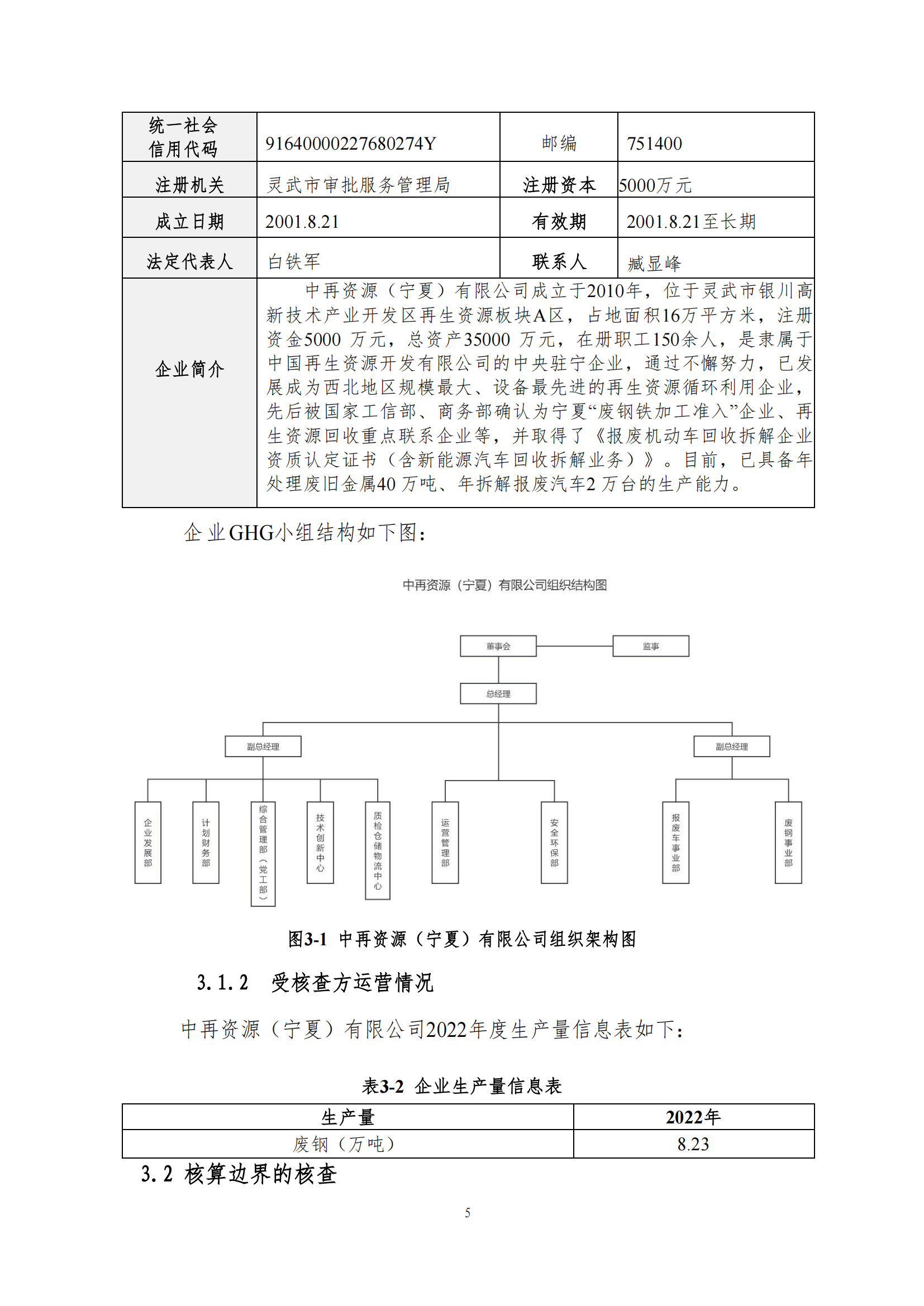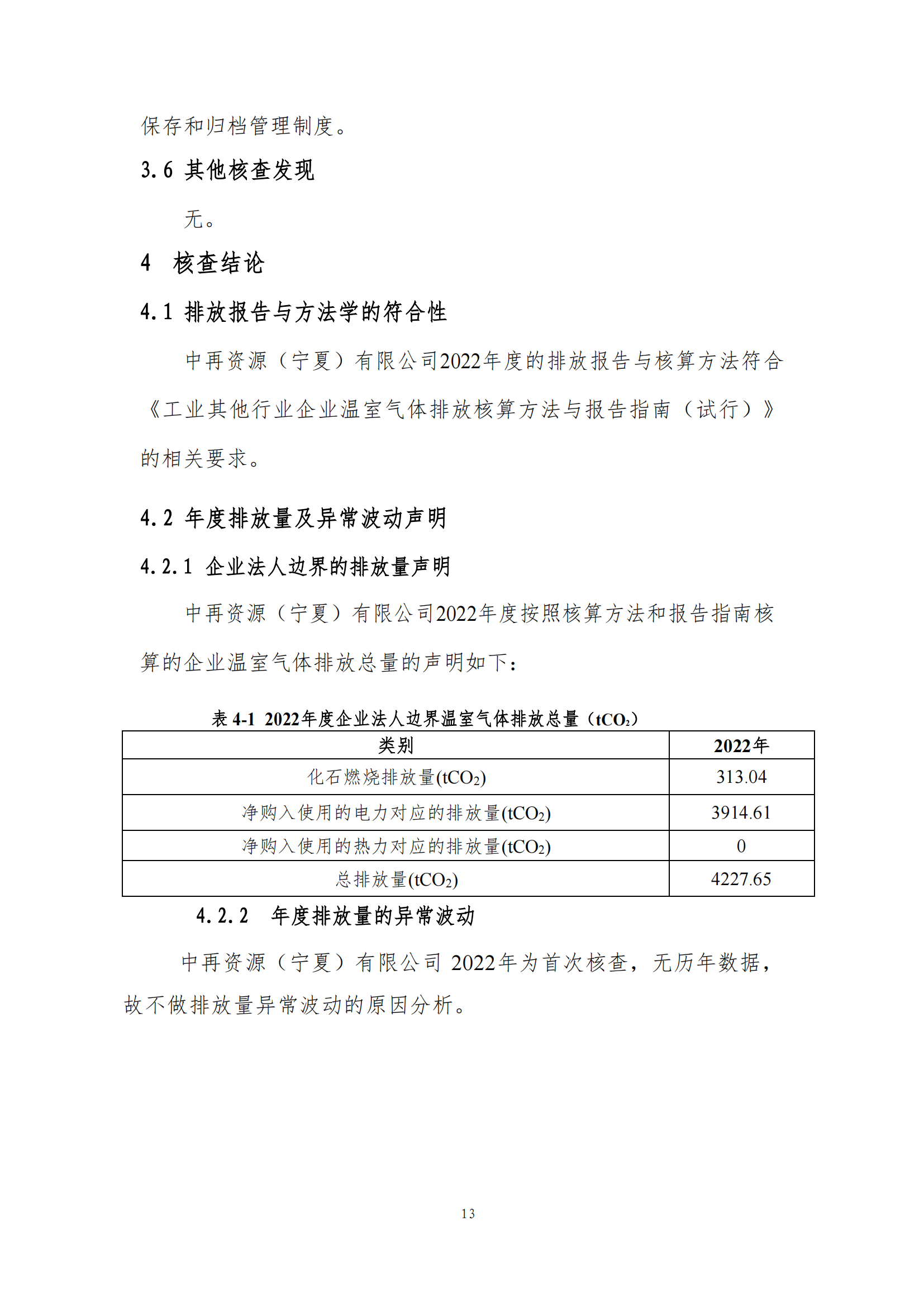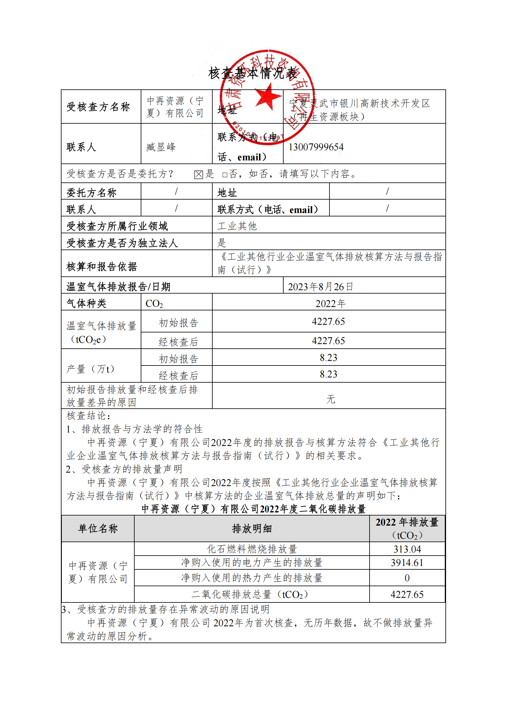 中再资源(宁夏)有限公司2022年度温室气体排放核查报告