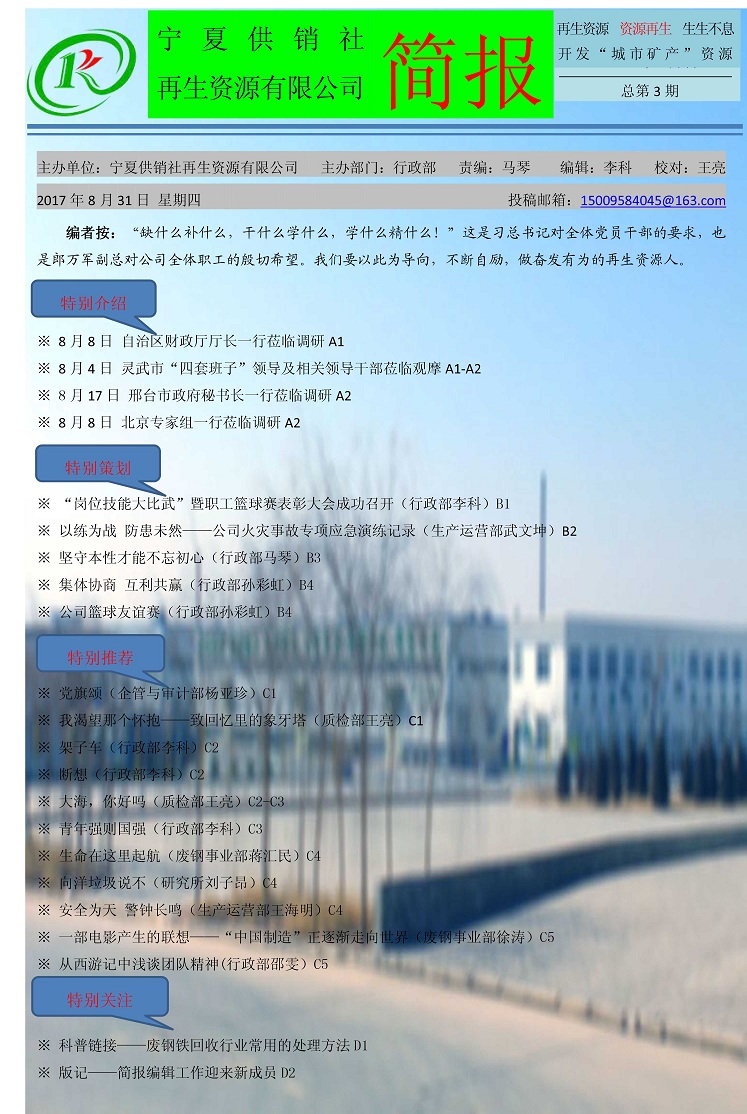 宁夏供销社再生资源有限公司简报(总第3期)