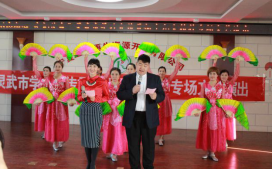 下午1时许,文化馆馆长贾玲玲就已带领文化馆工作者们来到了公司,2点整,演出正式开始,活动由文艺工作者杨艳艳、赵艳楠主持。活动中,《欢天喜地十九大》歌声嘹亮、气势恢宏,唱出祖国承前启后、继往开来的历史使命与时代强音,表演者阵容齐整、舞姿优雅,展现了灵武人新风貌、新气象的时代形象,拉开了整场演出的序幕。男声独唱《共筑中国梦》振奋人心、凝聚力量,演唱者以其透着磁性的声音,唱出了现场每位职工向往未来、对憧憬明天的信心与心声;最使大家难忘的要数小品《三个媳妇》,故事以三个媳妇回家看望彩票中奖的公爹一事为矛盾焦点,其极具膨胀的戏剧性令全场员工捧腹不跌,同时,对社会不良现象的关照,也引起了现场观众的反思和内心的共鸣。整场演出共十组节目,有舞蹈、歌曲、小品、戏曲、乐器演奏等多个门类,以品类之盛炫员工之耳目、表演之精致夺观众之掌声!在主持人的精彩主持下,时间如箭,2个小时的演出很快就接近尾声了。活动最后阶段,文艺工作者以一场节奏轻快、氛围喜庆的舞蹈——《和谐中国》结束了整场演出,舞者们鲜艳的着装,充分调动现场气氛,融入了对祖国美好明天的百倍信心和对未来幸福生活的乐观期待。