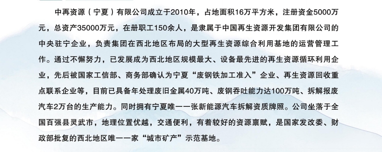 您好,欢迎光临中再生(宁夏)再生资源有限公司